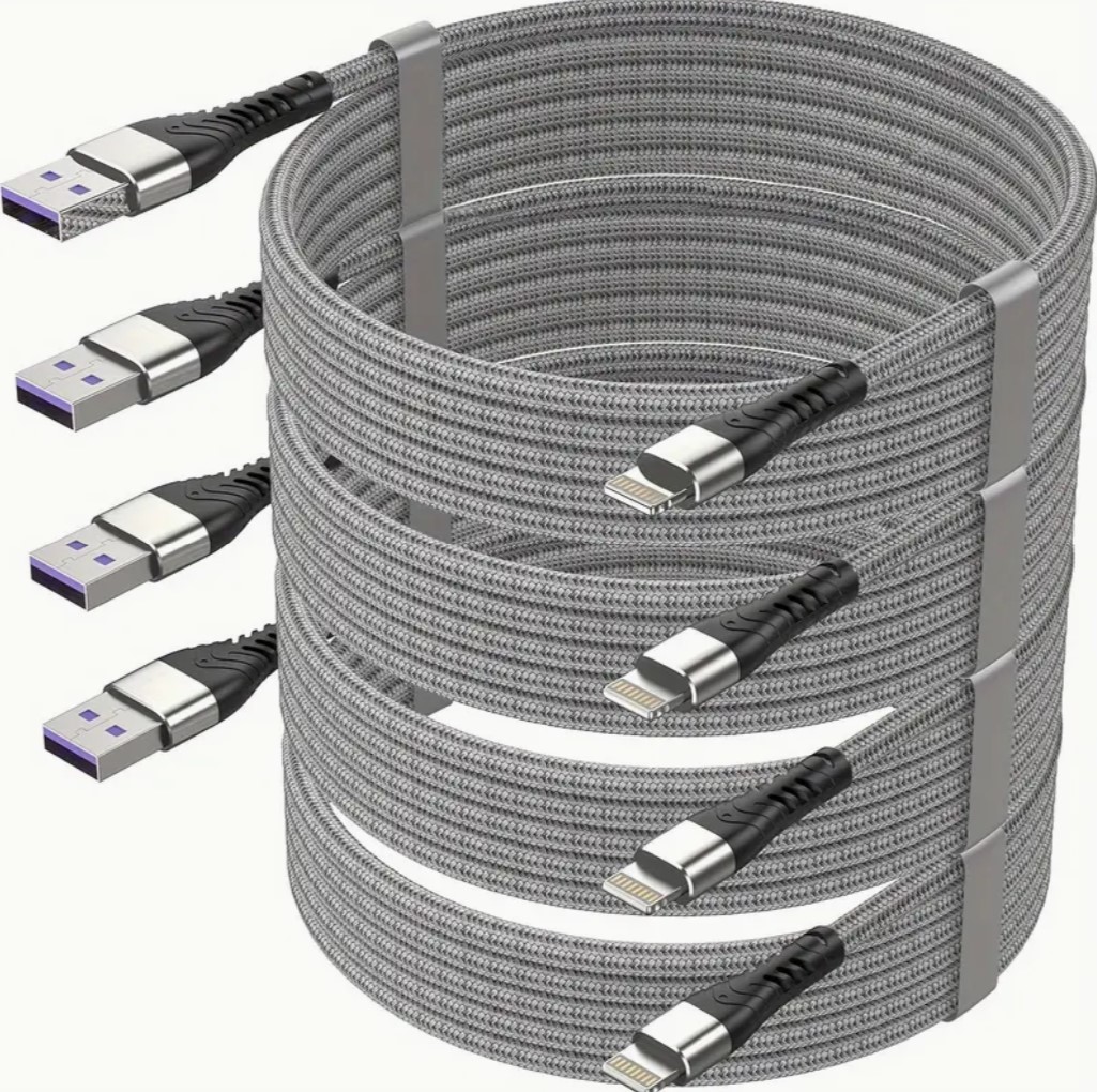 4-Pack 6ft Extra Long MFi Certified Durable Nylon Braided Lightning Cable – Fast Charger Cord for iPhone 14/13/12/11/X/XS/XR/XS Max/8/7/6/5S/SE/iPad Mini with Safe and Reliable USB Charging, Compact Round Design, and High-Speed Data Transmission